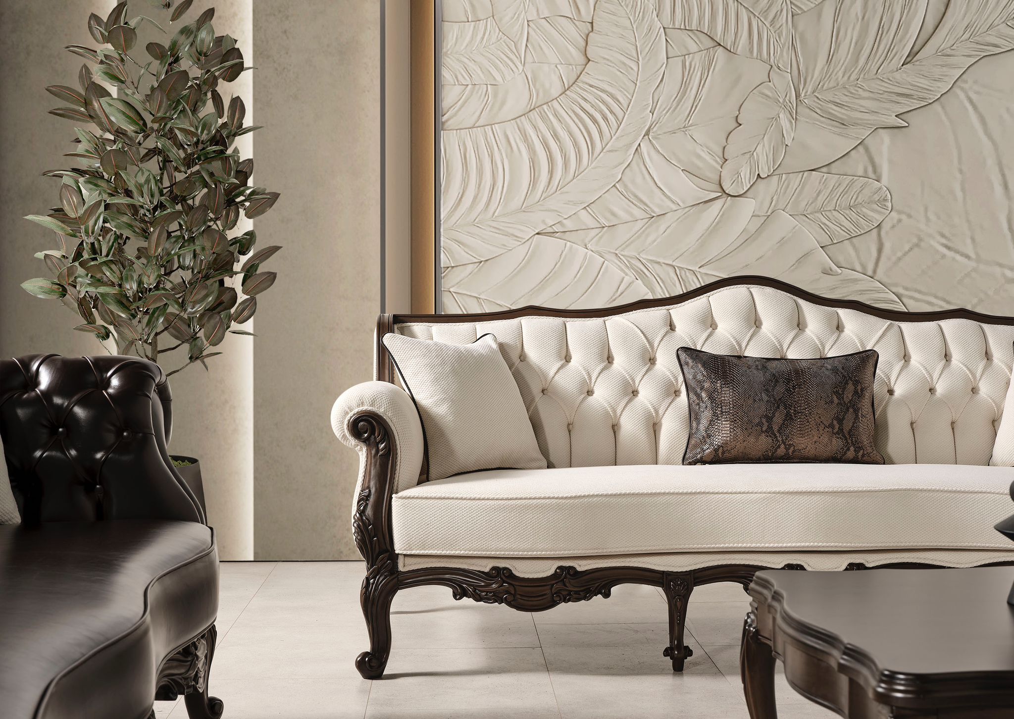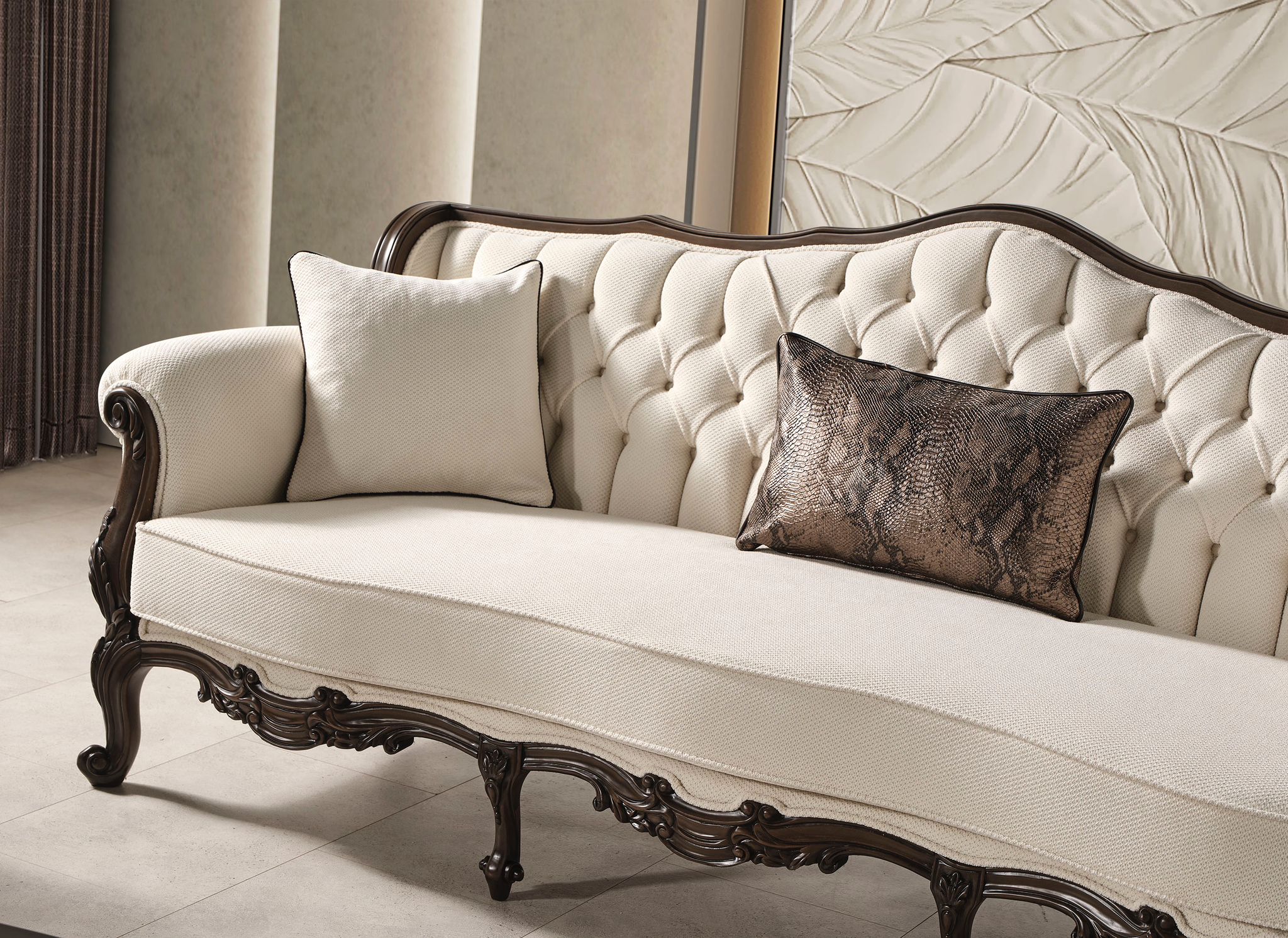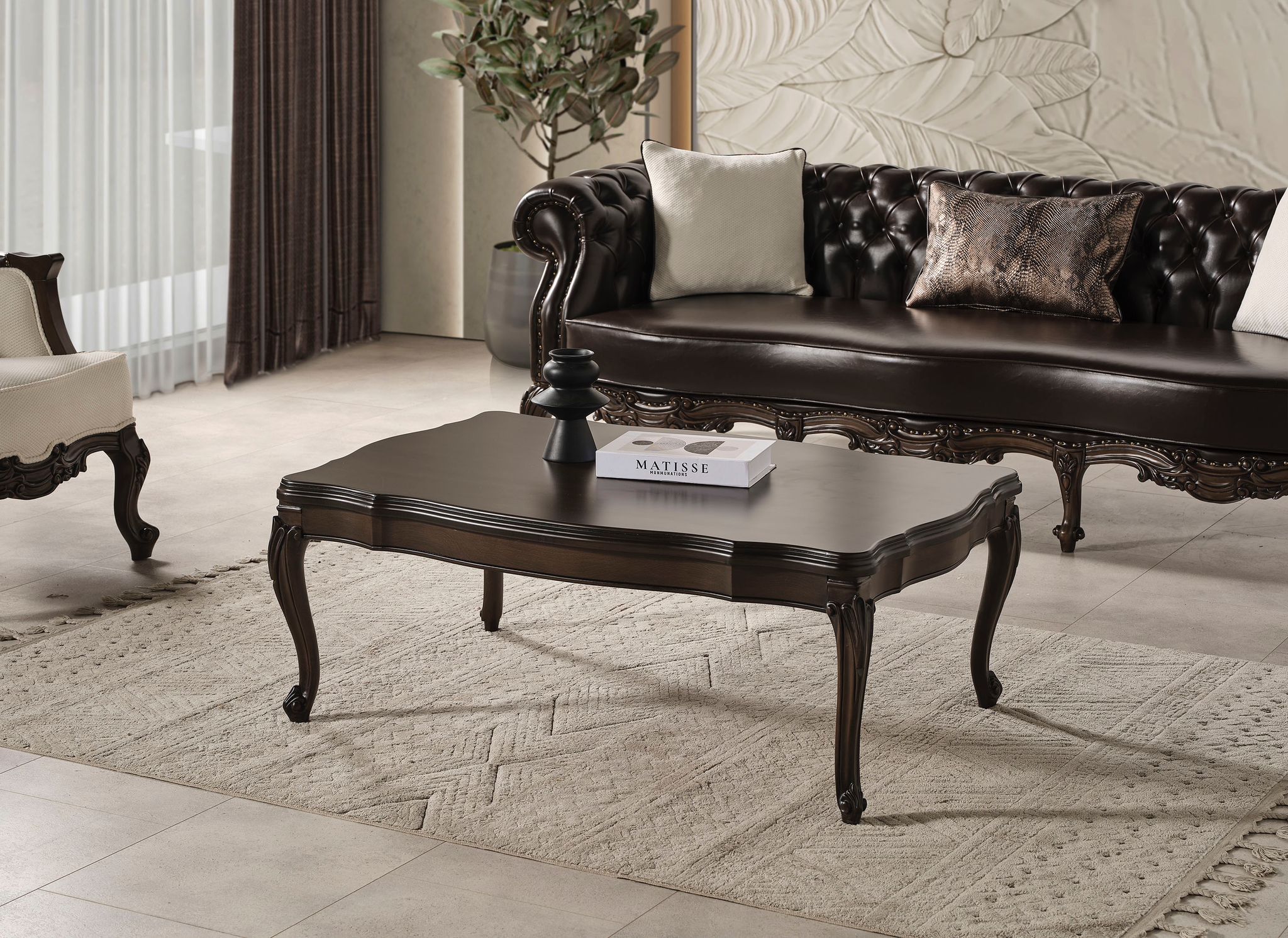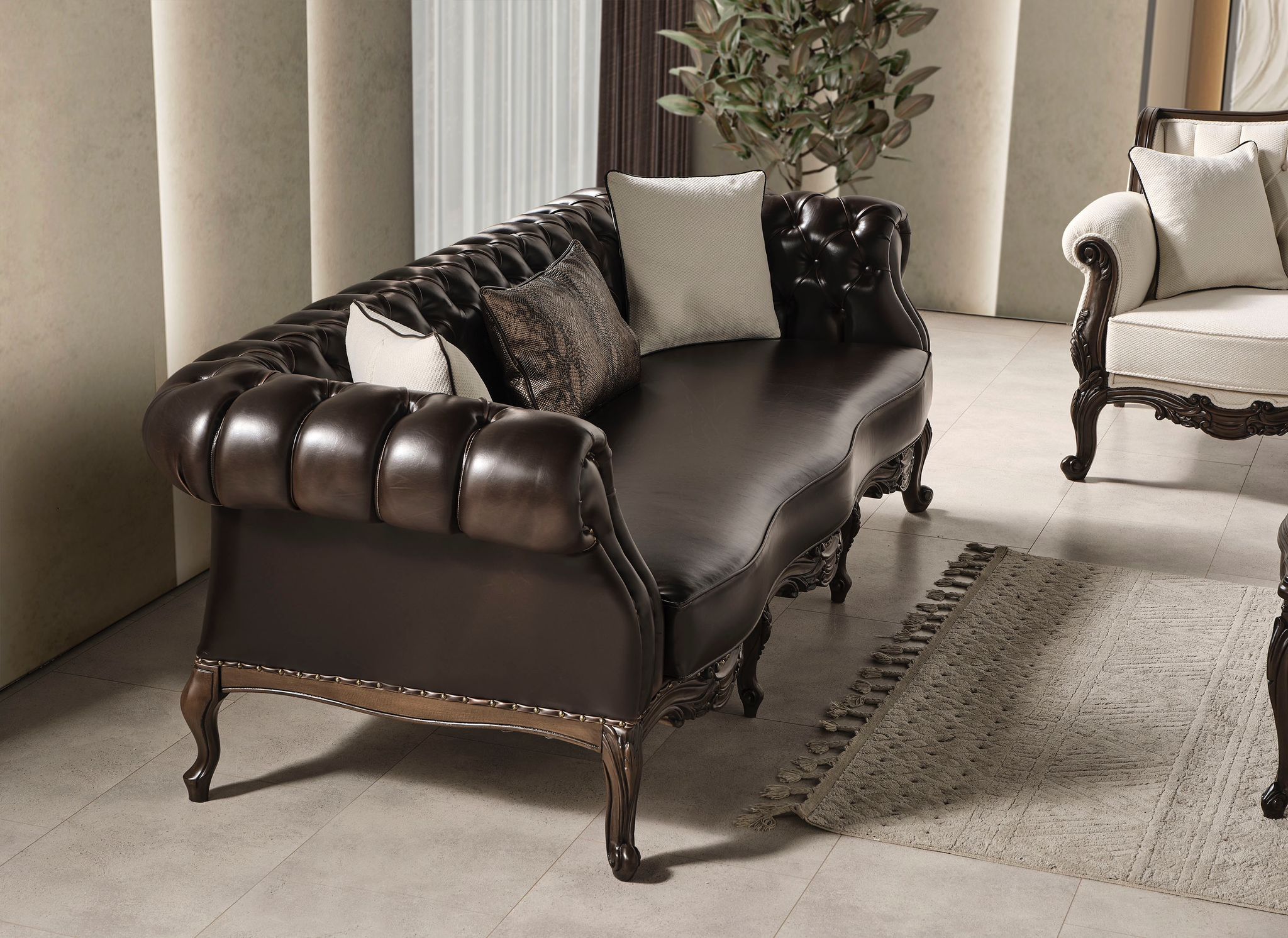 Özel oyma işçiliğinin doğal ağaçla bütünleşmiş hali Miray Koltuk Takımı evinizin en değerli parçası olacak.