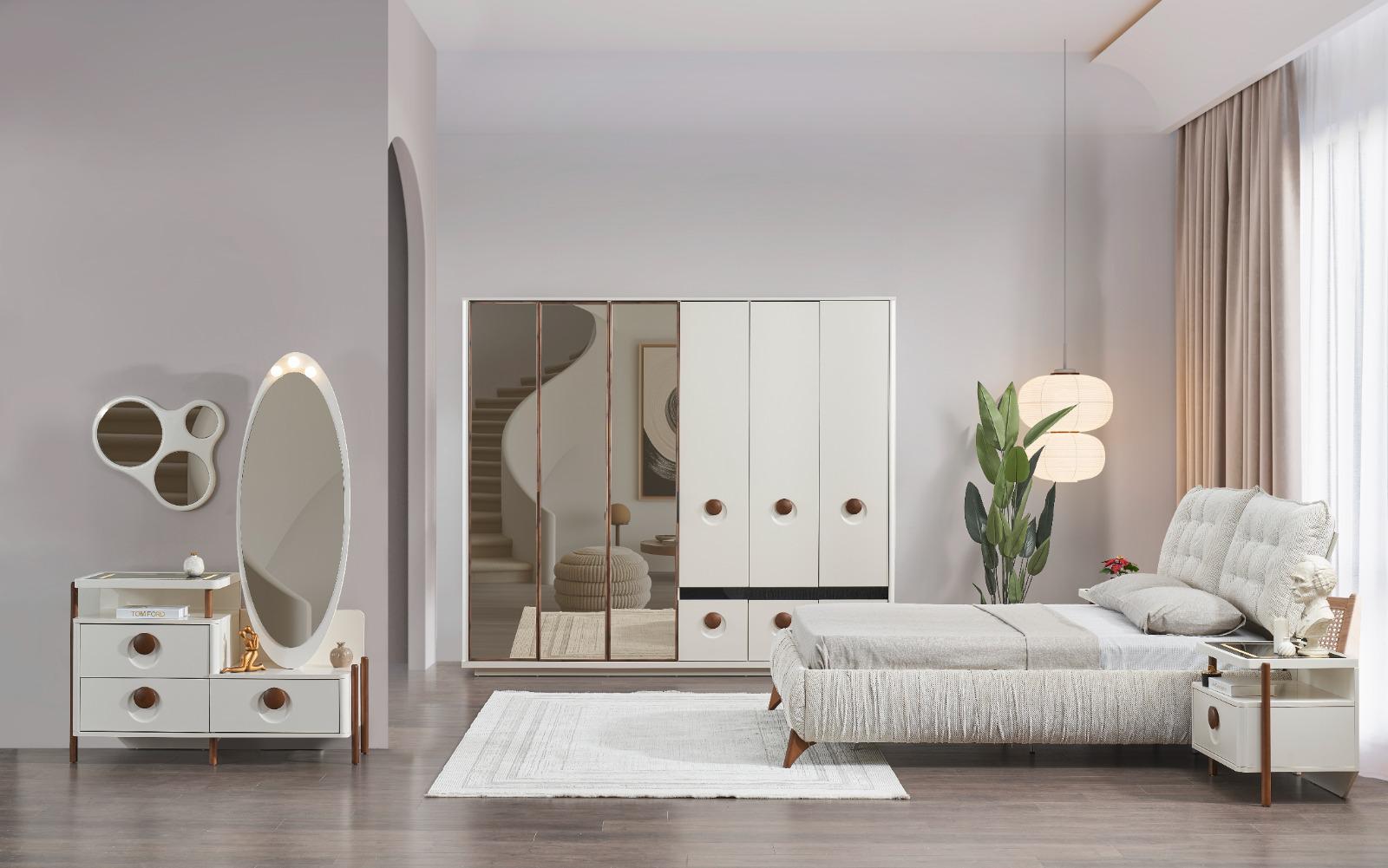 Alaçatı Yatak Odası, sıcak ve davetkar bir atmosfer sunuyor. Ege'nin esintisini ve Alaçatı'nın şıklığını evinize taşıyan bu odayı, rahatlığı ve estetiği bir araya getiriyor. Ahşap dokunuşlar ve doğal renkler, ferahlık ve huzur hissiyatını artırıyor. Alaçatı ile güne enerjik bir başlangıç ​​yapın, geceleri huzurlu bir uykuyla dinlenin.